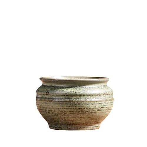 Material: cerâmica Tamanho: 12x12x8,5 cm Acabamento rústico em K-Glaze — Apresenta uma superfície envidraçada exclusiva com tons naturais de verde e marrom, dando a este vaso de cerâmica uma aparência vintage e artesanal. Material cerâmico durável — Feito de cerâmica de alta qualidade, este vaso de plantas garante robustez, respirabilidade e uso duradouro para plantio interno ou externo. Formato redondo compacto — Medindo 12x12x8,5 cm, o vaso é adequado para suculentas, cactos, ervas ou bonsai, tornando-o ideal para desktops e espaços pequenos. Artístico e funcional — Projetado com curvas suaves e cores terrosas, este vaso de flores combina apelo decorativo com função prática de plantio. Plantador decorativo versátil — perfeito para casa, escritório, varanda ou jardim, aprimorando sua área de estar com um toque rústico e elegante.