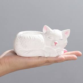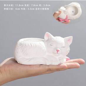 Material: cimento Tamanho: 11,8 x 7,8 x 5,8 cm Forma adorável de gato adormecido — Vaso de flores exclusivo em forma de gato dormindo em paz, trazendo um toque decorativo calmo e aconchegante a qualquer espaço. Material de resina durável — Feito de resina de alta qualidade, leve e resistente, adequado para uso em jardinagem interna e externa. Tamanho pequeno e prático — Medindo 11,8 x 7,8 x 5,8 cm, perfeito para suculentas, cactos ou pequenas plantas verdes, ideal para desktops, peitoris de janelas e prateleiras. Decoração de casa versátil — Ótima para decoração de casa, escritório, varanda, pátio ou jardim; funciona tanto como um plantador quanto como uma linda estatueta decorativa. Detalhes feitos à mão — Apresenta detalhes pintados à mão com expressões faciais delicadas e textura de pele, tornando cada vaso de flores único.