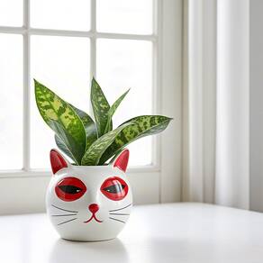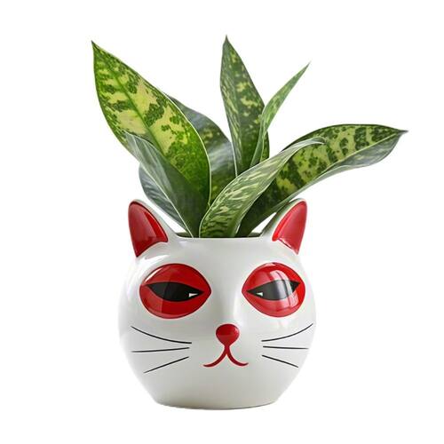 Material: resina Peso: 1150g Tamanho: 18,5 x 15,6 x 15,6 cm Design ousado para gatos — Vaso elegante em forma de gato com olhos vermelhos marcantes e expressão divertida, adicionando um toque divertido e moderno à sua decoração. Material de resina — Feito de resina durável, garantindo robustez e uso a longo prazo em ambientes internos e externos. Tamanho prático — Medindo 18,5 x 15,6 x 15,6 cm, peso 1150g, ideal para suculentas, ervas, cactos ou outras pequenas plantas decorativas. Acento decorativo — perfeito para mesas, varandas, pátios e jardins, criando uma atmosfera animada e atraente. Uso versátil — Funciona como plantador ou ornamento decorativo, tornando-o adequado para vários espaços e estilos de vida.
