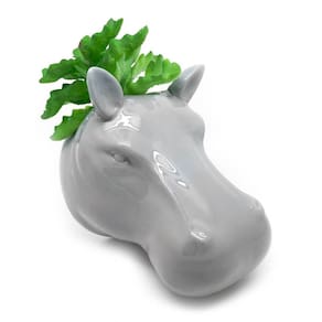 Vaso De Parede Cachepot Hipopótamo Cinza Cerâmica