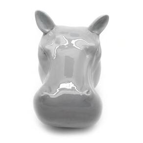 Vaso De Parede Cachepot Hipopótamo Cinza Cerâmica