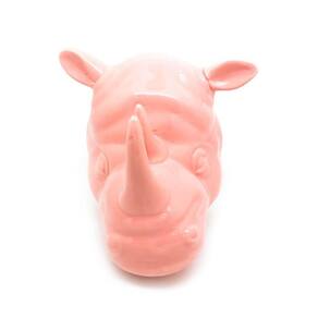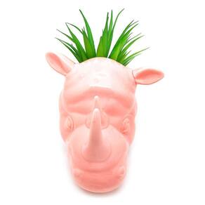 Vaso De Parede Cachepot Rinoceronte Rosa Porcelana