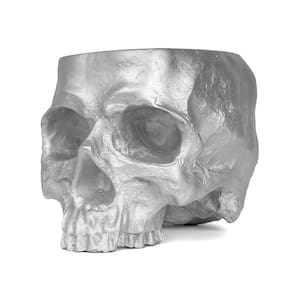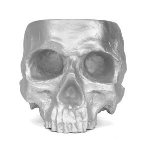 Material: resina Peso: 360 g Tamanho: 16,5 x 12,5 x 10 cm Design de caveira prateado — O vaso de flores exclusivo em forma de caveira em tom prateado traz um elemento decorativo gótico e ousado para seus espaços internos e externos. Material de resina durável — Feito de resina de alta qualidade, este vaso de plantas é leve, robusto e resistente a rachaduras para uso duradouro. Perfeito para plantas pequenas — Vasos ideais para suculentas, cactos, ervas ou flores pequenas, adicionando personalidade e criatividade à sua área de plantio. Decoração gótica e de Halloween — Um vaso de flores estiloso que aprimora festas com temas de terror, decorações de Halloween, adereços de palco ou design de casa gótico. Tamanho compacto — Dimensões 16,5 x 12,5 x 10 cm, peso 360 g, perfeito para desktops, varandas, pátios ou como um impressionante plantador interno/externo.