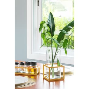Vaso de Vidro Com Suporte Decorativo Frame em Aço 24,5cm – Design Moderno - Forma Utilidades