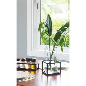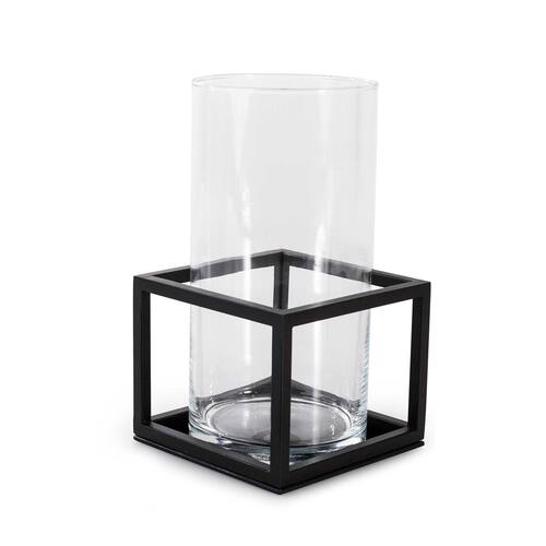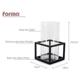 Vaso de Vidro 24,5cm Com Suporte Decorativo Frame Aço Forma - Cor: Preto