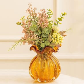 Vaso de Vidro Murano Flor Plantas Arranjos Âmbar Trouxinha 10x11cm Lemis