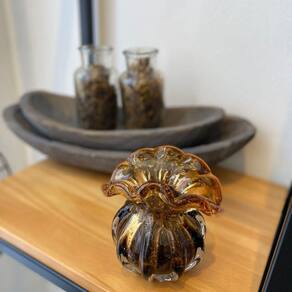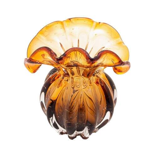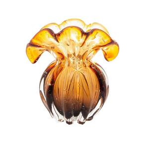 Vaso de Vidro Murano Italy Ambar e Marrom Lyor 11,5x9x11cm