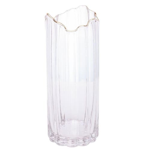 Vaso de Vidro Transparente com Borda Dourada para Flores Arranjos Plantas 10x25cm Wolff