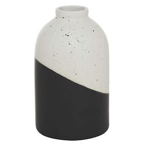 CARACTERÍSTICAS: VASO REDONDO: vaso alto com contraste de dois tons, apresenta acabamento em preto esmaltado e branco salpicado