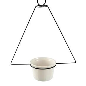 Vaso Decorativo Branco Com Suporte Para Pendurar Varanda Vaso Branco em Cerâmica com Suporte Triangular em Metal Inigual Decor
