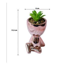 Vaso decorativo com pernas dobradas feito em cerâmica e suculentas artificial. Ideal para decorar racks, aparadores, estantes tornando o ambiente muito mais elegante e moderno.