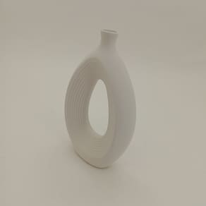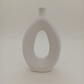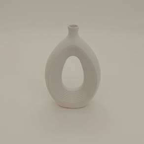 Altura: 25,5 cm Largura: 16 cm Profundidade: 6 cm Espessura: ,4 cm Peso: 0,67 Kg Diâmetro da Base: 9 cm Diâmetro do Corpo: 16 cm Diâmetro do Topo: 2,5 cm Material: Ceramica Cor: Branco