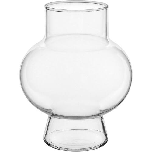 VASO Altura: 18,5 cm Largura: 15 cm Profundidade: 15 cm Espessura: ,4 cm Peso: 0,30 Kg Diâmetro da Base: 8,5 cm Diâmetro do Corpo: 15 cm Diâmetro do Topo: 8 cm Material: Vidro Cor: Transparente