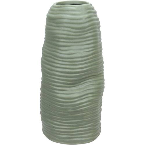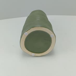 VASO DECORATIVO Altura: 27 cm Largura: 13 cm Profundidade: 13 cm Espessura: ,7 cm Peso: 1,10 Kg Diâmetro da Base: 13 cm Diâmetro do Topo: 6 cm Material: Cerâmica Cor: Verde