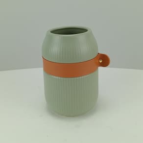VASO DECORATIVO Altura: 19,3 cm Largura: 14 cm Profundidade: 14 cm Peso: 0,89 Kg Diâmetro da Base: 9,5 cm Diâmetro do Topo: 8 cm Material: Cerâmica Cor: Verde