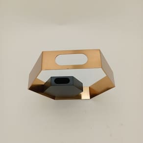 Altura: 23,7 cm Largura: 27 cm Profundidade: 5 cm Espessura: 1 cm Peso: 0,91 Kg Diâmetro da Base: 13,5 cm Diâmetro do Corpo: 27 cm Diâmetro do Topo: 13,5 cm Material: Metal Cor: Dourado