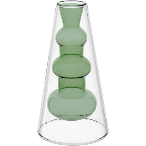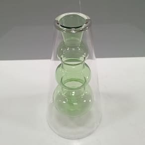 VASO DECORATIVO Altura: 18 cm Largura: 9,5 cm Profundidade: 9,5 cm Espessura: ,7 cm Peso: 0,20 Kg Diâmetro da Base: 9,5 cm Diâmetro do Corpo: 7 cm Diâmetro do Topo: 3 cm Material: Borossilicato Cor: Verde