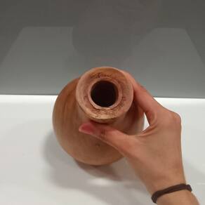 Altura: 16,7 cm Largura: 13 cm Profundidade: 13 cm Espessura: 1,6 cm Peso: 0,47 Kg Diâmetro da Base: 7,5 cm Diâmetro do Topo: 3,3 cm Material: Madeira Cor: Marrom