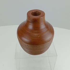 Altura: 16,4 cm Largura: 15 cm Profundidade: 15 cm Peso: 0,55 Kg Diâmetro da Base: 11,5 cm Diâmetro do Topo: 3,4 cm Material: Madeira Cor: Marrom