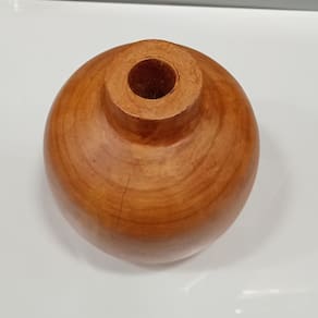 Altura: 18,2 cm Largura: 15 cm Profundidade: 15 cm Peso: 0,63 Kg Diâmetro da Base: 10,5 cm Diâmetro do Topo: 3 cm Material: Madeira Cor: Marrom