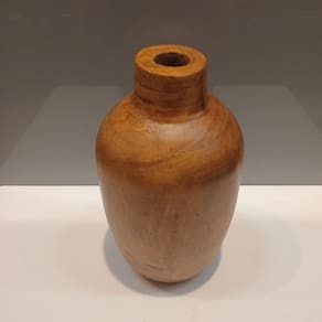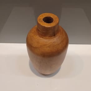 Altura: 23 cm Largura: 12 cm Profundidade: 12 cm Espessura: 1,3 cm Peso: 0,52 Kg Diâmetro da Base: 8 cm Diâmetro do Topo: 2,5 cm Material: Madeira Cor: Marrom