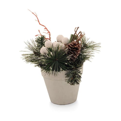 Enfeite Natalino, Com Pinha Em Vaso Prateado - Composição/Matéria Prima - 60% Plástico 30% Espuma 20% Metal - Cor Predominante - Prata - Cod. Cromus - 1210685 - Instruções Adicionais e Limpeza - Limpar com espanador