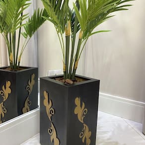 Os vasos são peças importantes na decoração, trazendo harmonia e alegria aos ambientes residências e comerciais. Nossos vasos possuem design, cores e combinações que realçam ainda mais qualquer ambiente, combinando bom gosto criatividade e sofisticação. ------------------------------------------------------------------------------------------------------------- Especificações técnicas ------------------------------------------------------------------------------------------------------------- Largura: 35,00 cm Profundidade: 35,00 cm Altura: 61,00 cm Boca: 26 cm Base: 35,00 cm Litros: 74,00 Peso: 6,5 kg Cor: preto ds, com detalhes em mdf dourado gc Material: mdf de primeira qualidade. Detalhes: mdf dourado gc Garantia: 3 meses contra defeito de fabricação. Limpeza: utilizar um pano macio flanela levemente umedecido com água ou lustra móveis Marca: creatus ------------------------------------------------------------------------------------------------------------- Ambientes -------------------------------------------------------------------------------------------------------------- -- hall de entrada O hall de entrada, certamente combina e necessita da presença de um vaso para enriquecer e requintar o ambiente, pois será o primeiro local a impressionar os amigos e visitantes. -- sala A sala com certeza é um dos locais em que o vaso harmoniza com elegância. Pois torna o ambiente mais aconchegante. -- empresas Os vasos também tem a função de alegrar ambientes empresariais, pois deixam o ambiente mais leve e suave. -- entradas de condominios Nas entradas de condomínios prediais e condomínios horizontais, os vasos além de beleza, deixa uma impressão de ambiente acolhedor e organizado. -- salões de beleza O mesmo podemos dizer para salões de beleza, onde uma decoração exemplar e um belo vaso pode ser o diferencial para atrair mais clientes e deixá-los aconchegados. ------------------------------------------------------------------------------------------------------------ Embalagem ------------------------------------------------------------------------------------------------------------- Nossos vaso são muito bem embalados, fazendo com que os riscos no transporte sejam reduzidos a quase nada. Caso acontecer um eventual dano no transporte, fazemos a reposição sem custo. ------------------------------------------------------------------------------------------------------------- Observação ------------------------------------------------------------------------------------------------------------- A planta constante no anúncio tem caráter ilustrativo e não acompanha o vaso. Uso exclusivo para plantas artificiais.