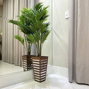Vaso Decorativo Trapézio Orlando Ddekcor 64Cm Os vasos são peças importantes na decoração, trazendo harmonia e alegria aos ambientes residências e comerciais. Nossos vasos possuem design, cores e combinações que realçam ainda mais qualquer ambiente, combinando bom gosto criatividade e sofisticação. Especificações técnicas Largura: 32,50 cm Profundidade: 32,50 cm Altura: 64,00 cm Boca: 31,30 cm Base: 20,00 cm Litros: 47,00 Peso: 6,0 kg Cor: marron pf, com detalhes em espelho acrílico prata Material: mdf de primeira qualidade. Detalhes espelho acrílico prata Garantia: 3 meses contra defeito de fabricação. Limpeza: utilizar um pano macio flanela levemente umedecido com água ou lustra móveis Marca: creatus Ambientes -- hall de entrada O hall de entrada, certamente combina e necessita da presença de um vaso para enriquecer e requintar o ambiente, pois será o primeiro local a impressionar os amigos e visitantes. -- sala A sala com certeza é um dos locais em que o vaso harmoniza com elegância. Pois torna o ambiente mais aconchegante. -- empresas Os vasos também tem a função de alegrar ambientes empresariais, pois deixam o ambiente mais leve e suave. -- entradas de condominios Nas entradas de condomínios prediais e condomínios horizontais, os vasos além de beleza, deixa uma impressão de ambiente acolhedor e organizado. -- salões de beleza O mesmo podemos dizer para salões de beleza, onde uma decoração exemplar e um belo vaso pode ser o diferencial para atrair mais clientes e deixá-los aconchegados. Embalagem Nossos vaso são muito bem embalados, fazendo com que os riscos no transporte sejam reduzidos a quase nada. Caso acontecer um eventual dano no transporte, fazemos a reposição sem custo. Observação A planta constante no anúncio tem caráter ilustrativo e não acompanha o vaso. Uso exclusivo para plantas artificiais. Ean: 7891095600120