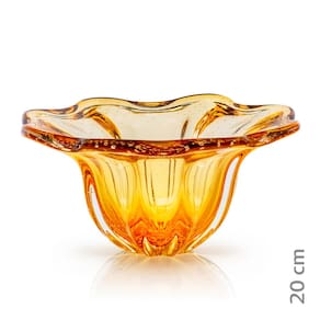 Vaso Em Cristal Murano Ambar São Marcos Comprimento:36cm Largura:36cm Altura:20cm Peso:5640g Produzida 100% artesanalmente com a técnica secular e originária da Itália, a qual com muita maestria e criatividade são desenvolvidas e preservadas no Brasil pela Cristais São Marcos desde 1962. As escolhas das peças são versáteis e podem ser usadas para decorar casas e ambientes dos mais variados estilos. A tradição do Cristal Murano e a inovação em detalhes, formas e cores, trazem requinte para a decoração. O colorido do Muranoem especial, torna-se um coringa na decoração e produzem um efeito muito bonito em locais com luz natural, não dependendo de nenhum outro elemento para se destacar. As peças em Cristal Murano, são atemporais, aposte nelas como a estrela da decoração ou ainda para harmonizar em combinações com diferentes artigos para compor um ambiente. Junto com as peças em Murano, leve ainda um pouco de história. Uma dica é misturar diferentes Muranos e criar sua coleção de arte particular. O cristal Murano, tornou-se objeto de desejo por suas características únicas. Sendo assim, com todas essas particularidades, ele é uma ótima escolha para decorar, colecionar e ainda presentear com classe e sofisticação.