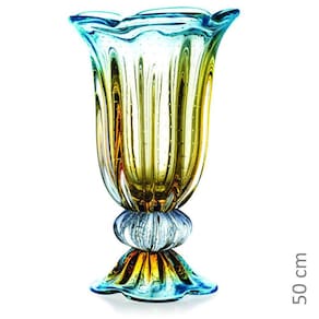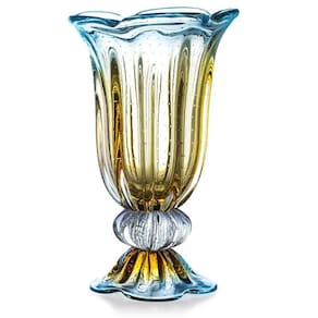 Vaso Em Cristal Murano Azul - Assinado - São Marcos 50cm Vaso Em Cristal Murano Azul - Assinado - São Marcos é uma peça decorativa produzida 100% artesanalmente com a técnica secular e originária da Itália, a qual com muita maestria e criatividade são desenvolvidas e preservadas no brasil pela Cristais São Marcos desde 1962. A tradição do cristal murano e a inovação em detalhes, formas e cores, trazem requinte para a decoração. O colorido do murano em especial, torna-se um coringa na hora de decorar e produz um efeito muito bonito em locais com luz natural, não dependendo de nenhum outro elemento para se destacar. As peças em cristal murano, são atemporais, aposte nelas como a estrela da decoração ou ainda para harmonizar em combinações com diferentes artigos para compor um ambiente. FICHA TÉCNICA Marca: São Marcos Modelo: Vaso Em Cristal Murano Azul - Assinado - São Marcos Ref.: 9107ZA Material: Cristal Murano Medidas A x C x L : 50 X 31 X 31 cm Peso: 11,300 Conteúdo Da Embalagem: 01 Vaso Em Cristal Murano Azul - Assinado - São Marcos Junto com as peças em murano, leve ainda um pouco de história. Uma dica é misturar diferentes muranos e criar sua coleção de arte particular. O cristal murano, tornou-se objeto de desejo por suas características únicas. Sendo assim, com todas essas particularidades, ele é uma ótima escolha para decorar, colecionar e ainda presentear com classe e sofisticação. IMPORTANTE: Produto produzido de forma artesanal, são admitidas nas características finais do processo de produção desse produto pequenas variações de peso, formato, cor e ainda o aparecimento de minúsculas bolhas de ar, típicas do cristal murano.
