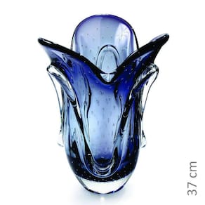 Vaso Em Cristal Murano Azul - São Marcos 37cm Vaso Em Cristal Murano Azul - São Marcos é uma peça decorativa produzida 100% artesanalmente com a técnica secular e originária da Itália, a qual com muita maestria e criatividade são desenvolvidas e preservadas no brasil pela Cristais São Marcos desde 1962.
