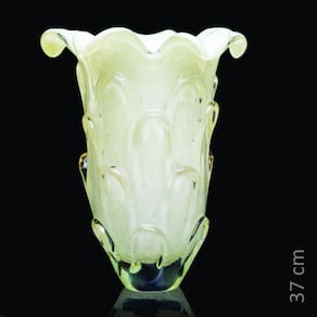 Vaso Em Cristal Murano Pérola - São Marcos 37cm Vaso Em Cristal Murano Pérola - São Marcos é uma peça decorativa produzida 100% artesanalmente com a técnica secular e originária da Itália, a qual com muita maestria e criatividade são desenvolvidas e preservadas no brasil pela Cristais São Marcos desde 1962. A tradição do cristal murano e a inovação em detalhes, formas e cores, trazem requinte para a decoração. O colorido do murano em especial, torna-se um coringa na hora de decorar e produz um efeito muito bonito em locais com luz natural, não dependendo de nenhum outro elemento para se destacar. As peças em cristal murano, são atemporais, aposte nelas como a estrela da decoração ou ainda para harmonizar em combinações com diferentes artigos para compor um ambiente. FICHA TÉCNICA Marca: São Marcos Modelo: Vaso Em Cristal Murano Pérola - São Marcos Ref.: 4215PE Material: Cristal Murano Medidas A x C x L : 37 X 31 X 31 cm Peso: 8,130 Conteúdo Da Embalagem: 01 Vaso Em Cristal Murano Pérola - São Marcos Junto com as peças em murano, leve ainda um pouco de história. Uma dica é misturar diferentes muranos e criar sua coleção de arte particular. O cristal murano, tornou-se objeto de desejo por suas características únicas. Sendo assim, com todas essas particularidades, ele é uma ótima escolha para decorar, colecionar e ainda presentear com classe e sofisticação. IMPORTANTE: Produto produzido de forma artesanal, são admitidas nas características finais do processo de produção desse produto pequenas variações de peso, formato, cor e ainda o aparecimento de minúsculas bolhas de ar, típicas do cristal murano.