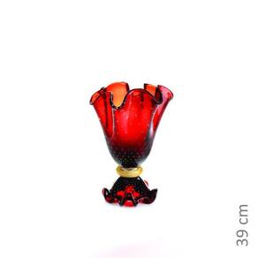 Vaso Em Cristal Murano Vermelho Com Ouro 24K São Marcos 39cm Vaso Em Cristal Murano Vermelho Com Ouro 24 K - São Marcos é uma peça decorativa produzida 100% artesanalmente com a técnica secular e originária da Itália, a qual com muita maestria e criatividade são desenvolvidas e preservadas no brasil pela Cristais São Marcos desde 1962.