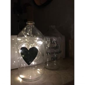 Vaso Garrafa de Vidro com Luz Led Coração Decoração