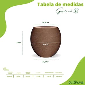 Vaso Grafiato Oval 32 (24L) Cor Ferrugem NUTRIPLAN   Descrição * O Vaso Grafiato Nutriplan é a escolha ideal para quem busca elegância e durabilidade em vasos decorativos. * Com um design único e uma textura sofisticada que remete ao acabamento grafiato, este vaso se destaca como uma peça versátil para ambientes internos e externos * Trazendo um toque rústico e contemporâneo que se adapta a diversos estilos de decoração. * Fabricado com polietileno, o Vaso Grafiato oferece excelente resistência a impactos e proteção contra raios UV, garantindo sua durabilidade mesmo em condições externas. * Além de ser fácil de limpar e manter, este vaso é perfeito para acomodar plantas ornamentais de diferentes tamanhos, incluindo árvores frutíferas em seus modelos maiores, e pode ser utilizado em composições em jardins, varandas ou na decoração de interiores em salas e escritórios. * Transforme seu espaço com o Vaso Grafiato Nutriplan, a solução perfeita para quem deseja unir beleza e funcionalidade na decoração.   Características * Tamanho: N°32 * Altura: 32 cm * Largura (Boca): 28,4 cm * Largura (Fundo): 21,2 cm * Capacidade: 24 Litros * Cor: Ferrugem * Material: Polietileno   Informações/Dicas/Usos * Possui proteção UV das cores. * Produto leve. * 100% feito a mão.   Nós da CULTIV.ME trabalhamos desde 2013 para trazer os melhores produtos ao alcance de todos. CULTIV.ME o verde que faltava!