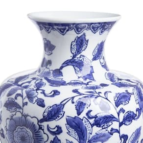 O Vaso Azure tem 23 cm, produzido em porcelana, um material nobre e ao mesmo tempo delicado, com sofisticação atemporal. A peça traz a tradição da pintura clássica inspirada na chinoiserie, um estilo caracterizado pela observação de folhagens e flores orientais. A pintura em azul feita à mão traz personalidade e um ponto de destaque único à decoração.