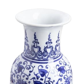 O Vaso Azure tem 25 cm, produzido em porcelana, um material nobre e ao mesmo tempo delicado, com sofisticação atemporal. A peça traz a tradição da pintura clássica inspirada na chinoiserie, um estilo caracterizado pela observação de folhagens e flores orientais. A pintura em azul feita à mão traz personalidade e um ponto de destaque único à decoração.