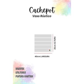 Item: vaso rústico não é segredo marrom 40x36 Sku: nsvf01 Tipo: cachepot O vaso rústico não é segredo é um acessório decorativo elegante e versátil que pode transformar o visual de qualquer ambiente. para acomodar plantas, flores ou outros itens decorativos, o cachepot de madeira combina funcionalidade com estética. - medidas: Altura: 36cm Largura: 40cm Profundidade: 40cm - composição do produto: Madeira Pintura na cor marrom Pintura em verniz marítmo incolor Pé fixo de plástico Próprio para área interna e externa Quais cuidados e precauções: Não utilizar produtos químicos; Realizar a manutenção de limpeza com pano úmido. Atenção: algumas das embalagens podem sofrer alterações por parte do fornecedor, permanecendo as características do produto, tais como: função, composição, peso e quantidade, sem tempo hábil para serem atualizadas em nosso site e canais parceiros. Imagens meramente ilustrativas. Visualizações em mobile e desktop podem sofrer alterações de cor. Marca: Não Informado