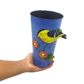 Este belo vaso de metal é um enfeite para jardim, casa, quintal, varanda, etc. Ao mesmo tempo que serve par guardar coisas dentro, como flores, jornais, também tem um design arrojado, com flores e borboletas em relevo na frente, pintados de maneira colorida. A durabilidade do material também é boa por ser feita em ferro, com bela pintura. ;