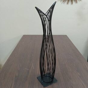 VASO Altura: 63 cm Largura: 16 cm Profundidade: 16 cm Peso: 1,55 Kg Diâmetro da Base: 13,2 cm Diâmetro do Topo: 15 cm Material: Metal Cor: Preto