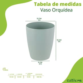 Vaso Orquídea (12x15cm) Verde Vintage VASART Descrição * Gosta de beleza e harmonia? * A coleção Orquídea cumpre bem este papel. * A linha Orquídea é exclusiva para ambientes internos e foi feita para transformar seus cômodos. * Se adequa perfeitamente em qualquer espaço trazendo charme e elegância com um toque de luxo. * Sua produção conta com uma avançada tecnologia e seu material é polipropileno.