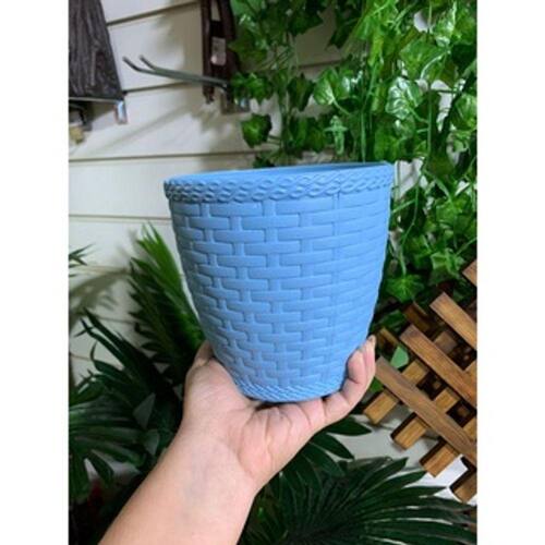 Vaso Para Planta Redondo Rattan De Plastico 300 ml 8cm - Azul Bebe