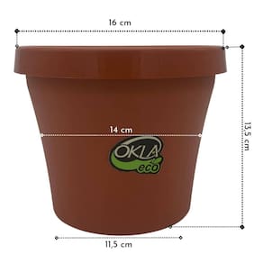 Vaso Redondo Veneza ECO (16X13) Cor Terracota OKLA Descrição * Renove seu ambiente com o Vaso Okla Veneza! * Feito em plástico de alta qualidade, este vaso é perfeito para quem busca praticidade e estilo. * Com seu design moderno, ele vai complementar qualquer espaço com elegância e charme. * Ideal para decorar sua varanda, sala e seu jardim!
