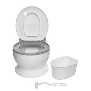 Ele se assemelha a um vaso sanitário de adulto, em tamanho ideal para o pequeno adquirir sua independência.