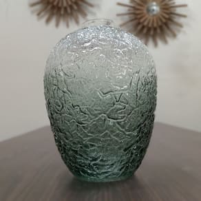 VASO Altura: 30,5 cm Largura: 21 cm Profundidade: 21 cm Peso: 1,89 Kg Diâmetro da Base: 11 cm Diâmetro do Topo: 6 cm Material: Vidro Cor: Fumê