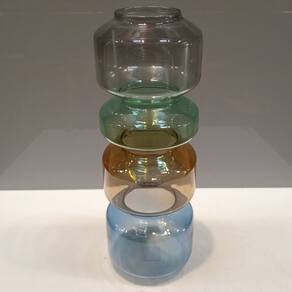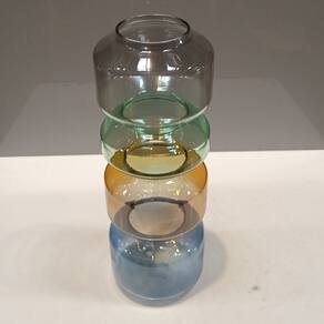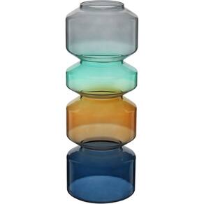 VASO Altura: 28,3 cm Largura: 9,5 cm Profundidade: 9,5 cm Espessura: ,3 cm Peso: 0,33 Kg Diâmetro do Topo: 6 cm Material: Vidro Cor: Multicolorido