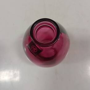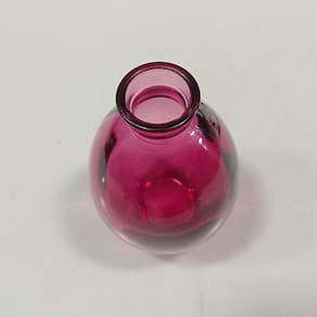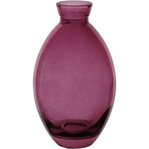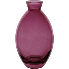 VASO Altura: 12 cm Largura: 6,5 cm Profundidade: 6,5 cm Espessura: ,3 cm Peso: 0,18 Kg Diâmetro da Base: 3,5 cm Diâmetro do Topo: 3 cm Material: Vidro Cor: Roxo
