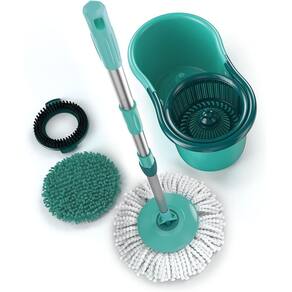 O balde giratório permite que você lave e seque o mop com facilidade, sem precisar usar as mãos. Além disso, o cabo ajustável facilita a limpeza de áreas altas e de difícil acesso. O conjunto inclui um mop de microfibra super absorvente, que remove a sujeira e a poeira com facilidade, deixando o chão brilhante e limpo.