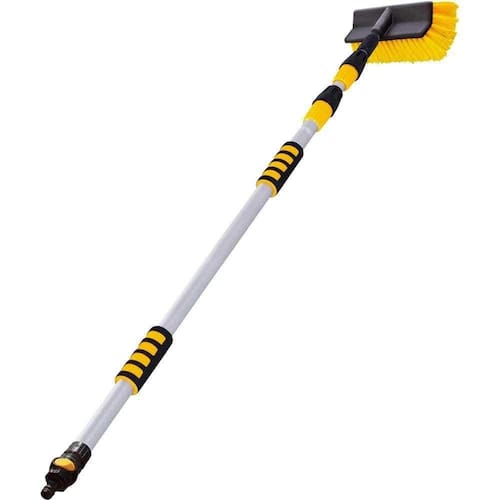Possui cabo metálico extensível com conector para engate rápido e apoio para as mãos, além de furação interna na cepa que libera a passagem de água entre as cerdas.