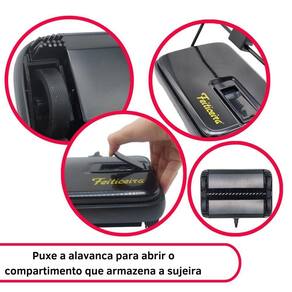 Vassoura Feiticeira Varredoura Nova Agora existe um jeito rápido e moderno para limpar pisos e carpetes de maneira eficiente, silenciosa e pratica. Conheça a revolucionária Vassoura Feiticeira Compact 1 Escova Mágica Modo de uso: Rosquear os cabos e encaixar na vassoura, feito isso, deslizar a mesma pelo piso para frente e para trás, após o uso, abrir o compartimento e despejar a sujeira no lixo. Marca: Feiticeira. Cor: Preto. Conteúdo da Embalagem: 1 vassoura + cabo desmontado. Peso líq. Aproximado do produto kg : 1,3 kg. do Fornecedor: 1 Ano. Defeitos de Fabricação, não cabendo a desgaste ou mau uso. Dimensões aproximadas do produto: Comprimento: 28cm. Altura: 7cm. Largura: 24cm.